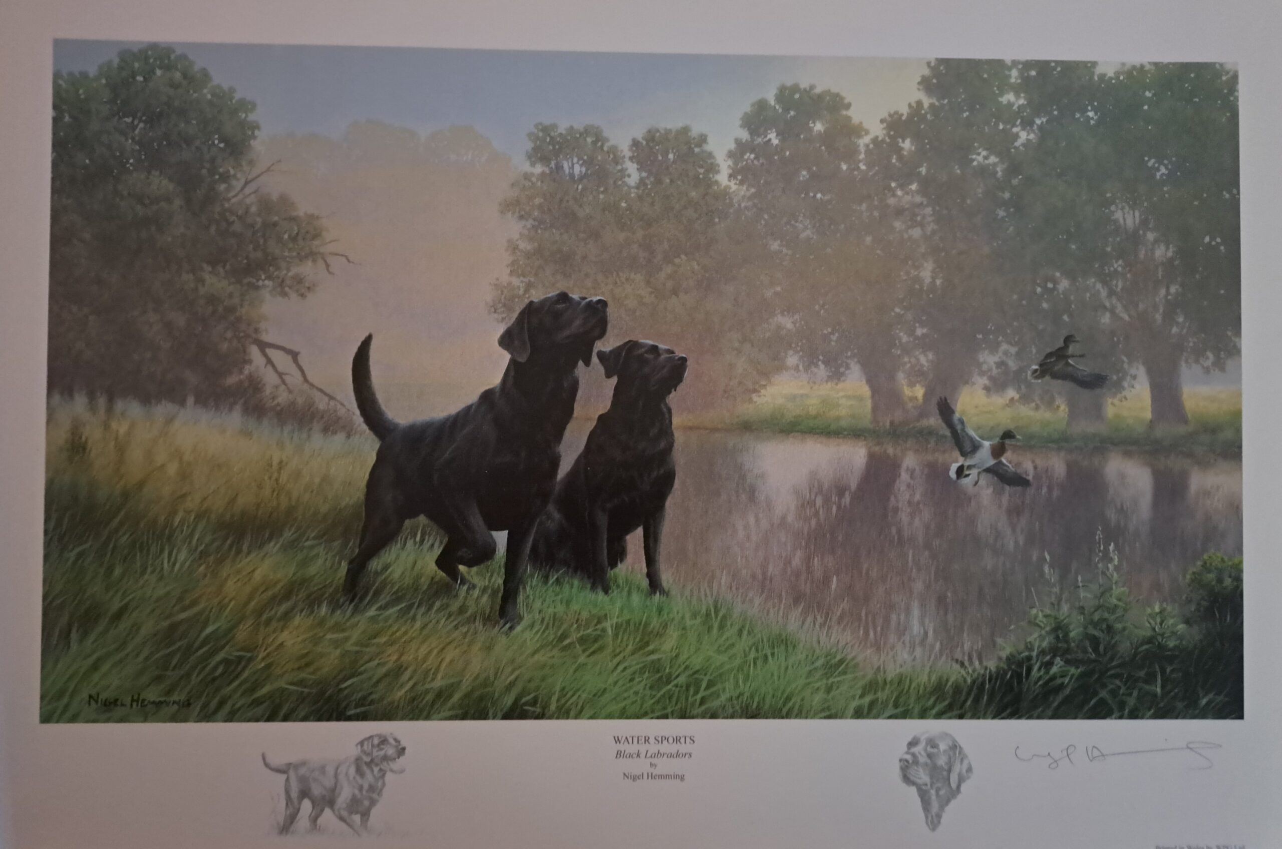 Signed by the artist and includes two pencil sketches of Labradors in the border