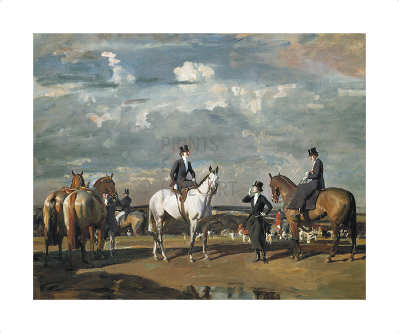 Sir Alfred Munnings was a renowned British twentieth century artist who was especially celebrated for his horse racing and hunting scenes. Why Werent You Out Yesterday? was hung in the Royal Academy Summer Exhibition in 1939 and was one of two hundred and thirty pictures exhibited by Munnings in the Royal Academy throughout his successful career.