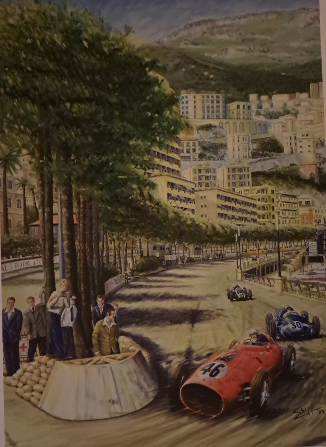 Ferrari’s Jean Behra leads the Coopers of Stirling Moss and Jack Brabham around Gasometer Hairpin. The Ferrari’s engine would break as would Moss’s gearbox when leading by a clear minute. Brabham would pick up the pieces to score his and the works Cooper teams first Grand Prix win