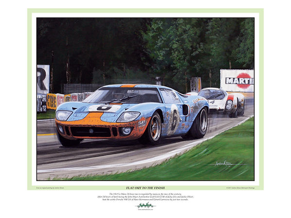 The 1969 Le Mans 24-hour race is regarded by many as the race of the century. After 24 hours of hard racing, the John Wyer Automotive Gulf Ford GT40 of Jacky Ickx and Jackie Oliver, beat the works Porsche 908LH of Hans Hermann and Gerard Larrousse by just two seconds.