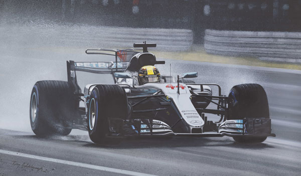 This limited edition print shows Lewis Hamilton securing a record breaking 69th career pole position at the Italian Grand Prix, Monza – 2017.