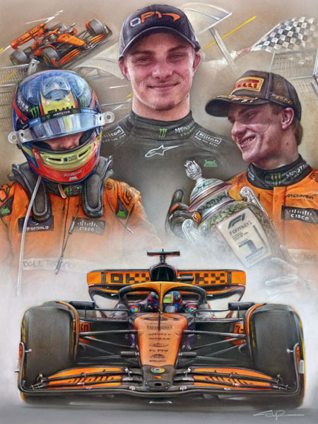 Art prints posters paintings of motor racing driver Oscar Piastri