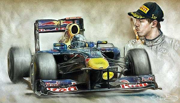 Art prints posters paintings of F1 driver Sebastian Vettel