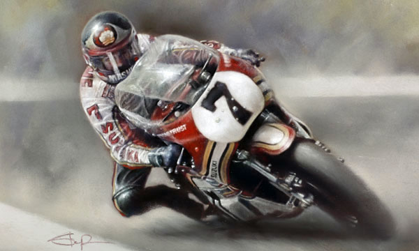 Art prints posters paintings of motorcycle racing rider Barry Sheene