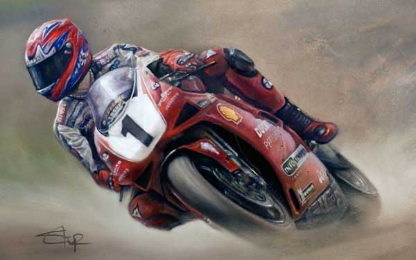Art prints posters paintings of motorcycle racing rider Carl Fogarty
