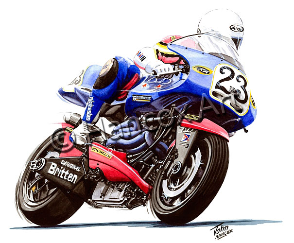 1993 was Britten’s Isle of Man TT debut. During the Senior TT race, Shaun set a new top-speed record with his Britten V1000 passing through the Glencrutchery Road speed trap at 165mph!