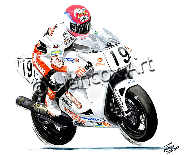 Steve Hislop rode the Abus backed, 588 Rotary Norton to second place in the 1992 Formula One TT race but went one better to claim victory in the Senior TT after a thrilling race-long battle with Carl Fogarty (750 Yamaha).