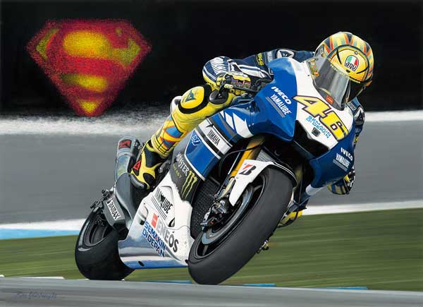 This limited edition print shows Valentino Rossi racing to victory at the 2013 Dutch MotoGP.