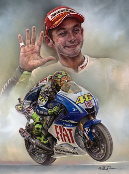 Art prints posters paintings of motorcycle racing rider Valentino Rossi